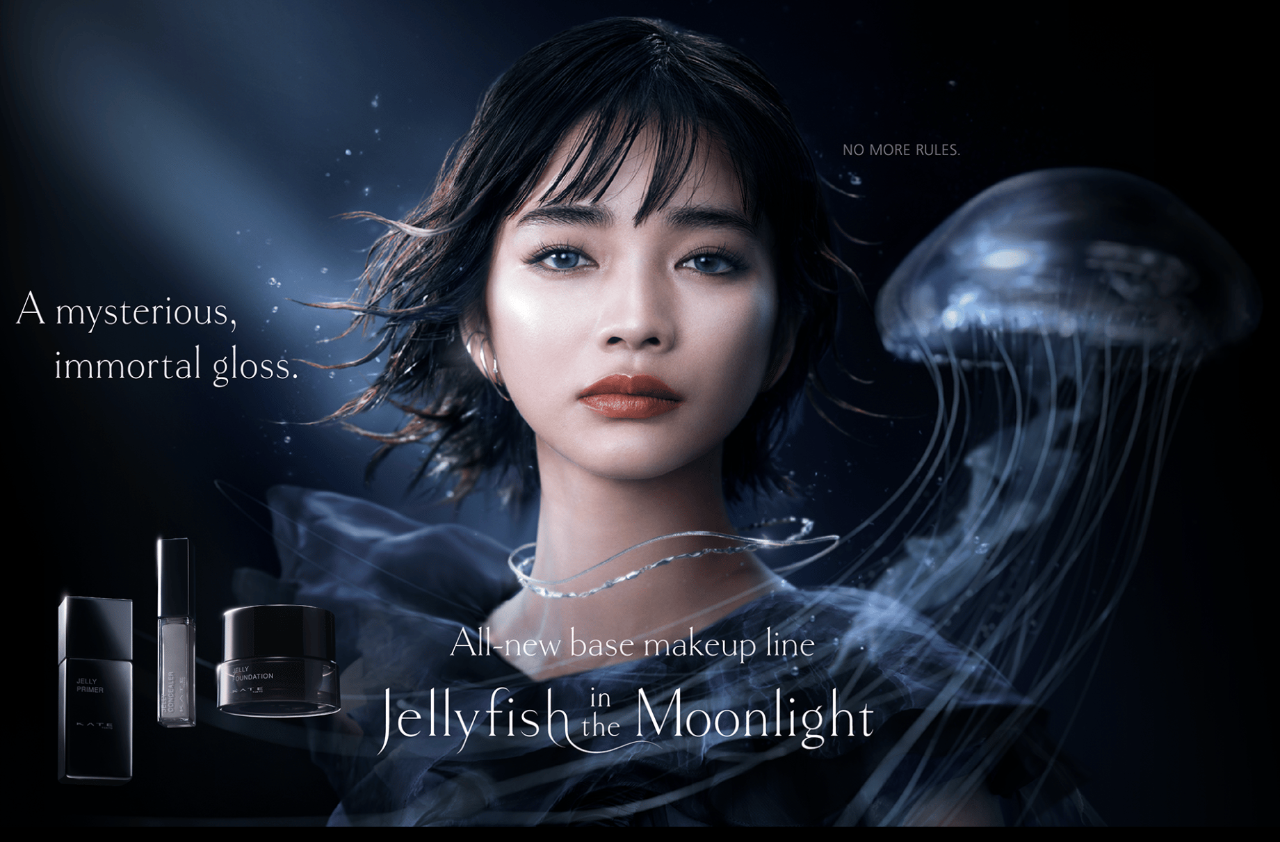 I started with a static image. A high-gloss cosmetic ad featuring jellyfish by Japanese beauty brand, Kate. Instead of describing it, I asked the AI to analyze it and output the style as a JSON object. This gave me a digital fingerprint of that aesthetic: specific parameters for lighting, color grading, and composition, stripped of the subject matter.