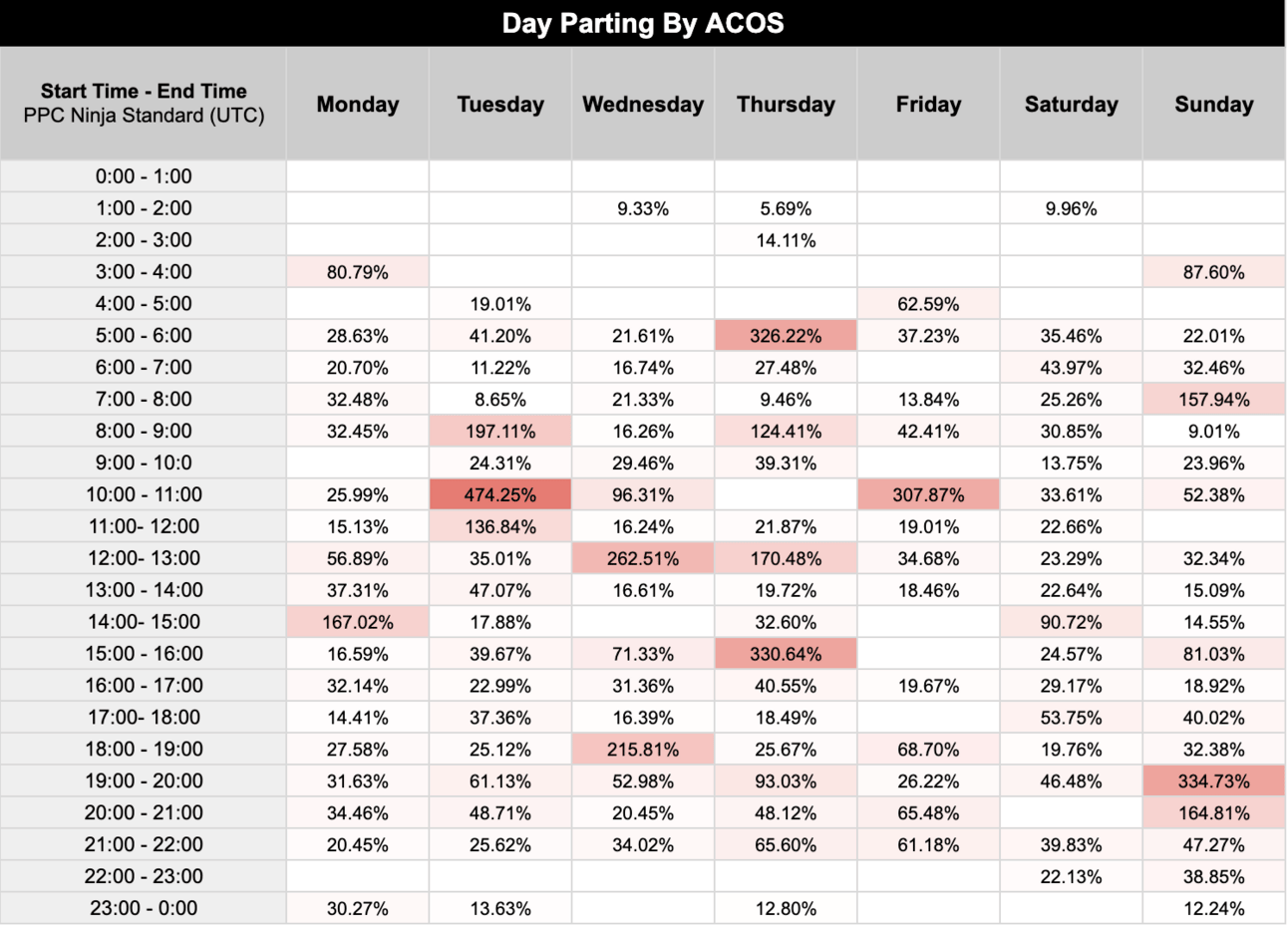 For my first step, I sent it my PPC day-parting hourly data analysis Google sheet to analyze the Day Parting by ACoS Tab.