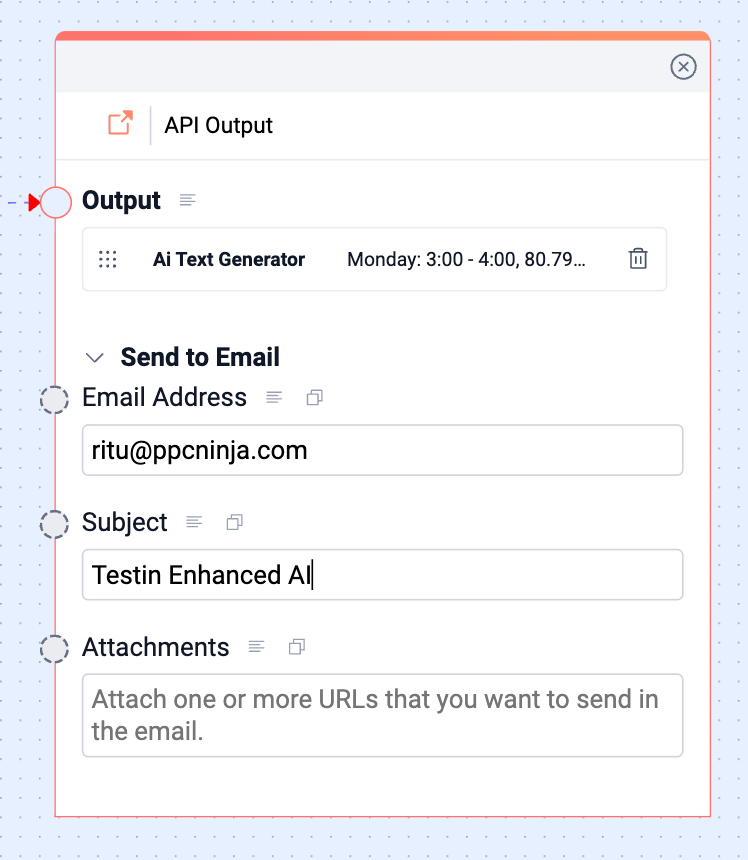 I simply dragged a connector from the previous step to this one and provided my email address to send the output to.