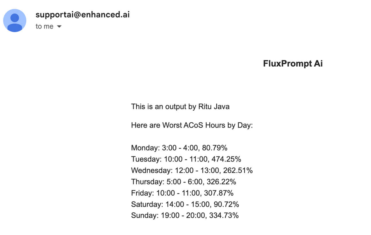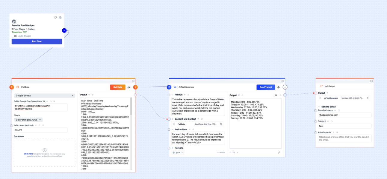 Finally, I ran the workflow using the Flow Controller, and just like that, it sent me an email with the analysis.