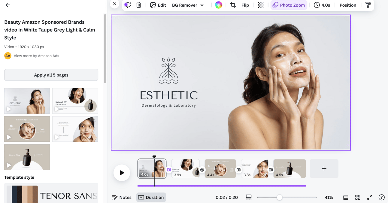 Canva provides you with some stunning pre-build templates that you can start with. The BIGGEST advantage to this over using Amazon’s own video builder is that this is completely customizable. You can change fonts, colors, background music and length with a simple drag and drop operation.
