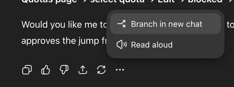How It Works: Simply right-click any message in your conversation and select "Branch in new chat" - you'll get a new conversation that starts from that exact point, while your original chat continues independently.