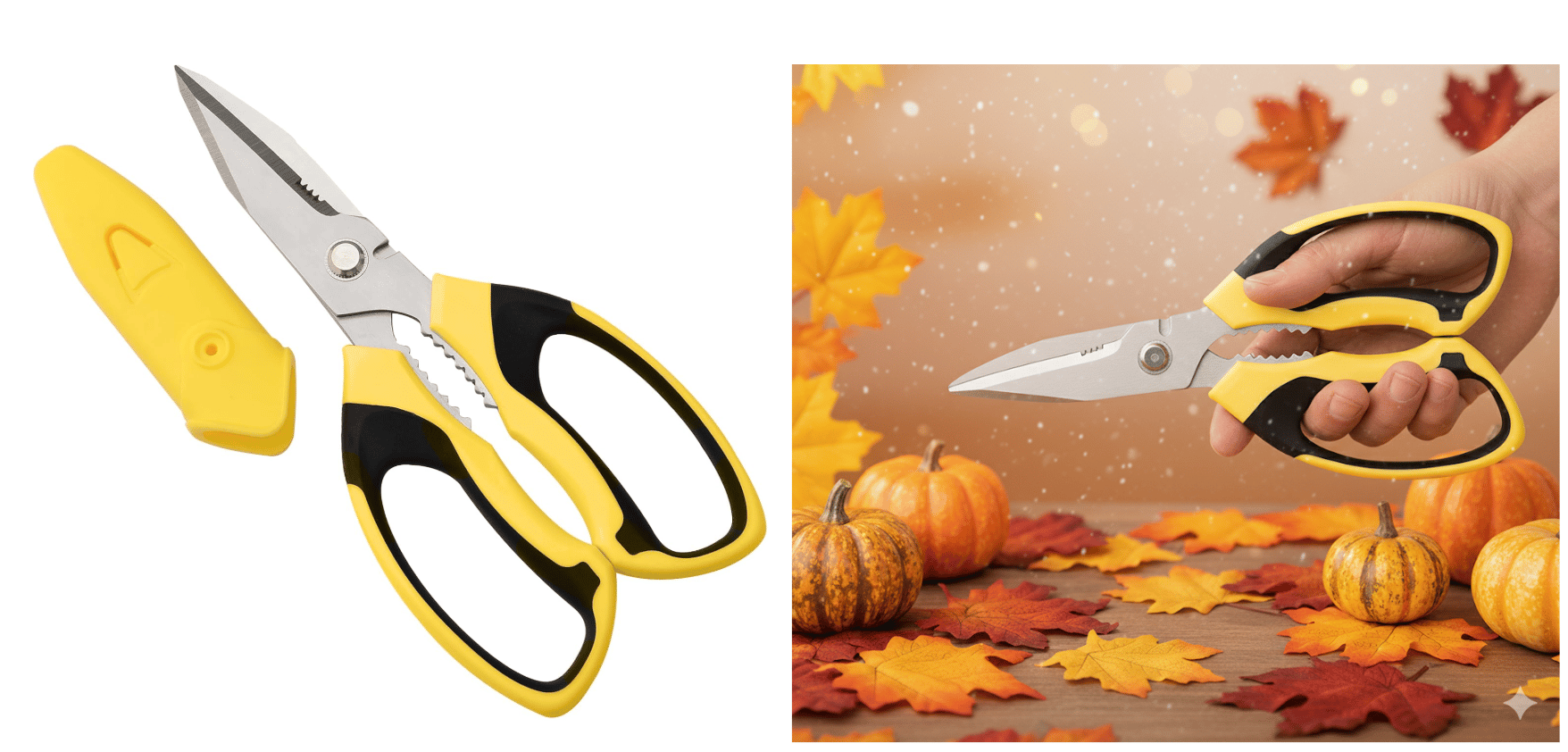 Prompt:ย "Integrate this product photo into a holiday campaign scene โ add fall elements like pumpkins"
