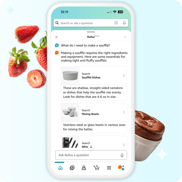 RUFUS goes full recipe-blogger on you (minus the life story) — but the end goal? Getting you to a product you can buy on Amazon.