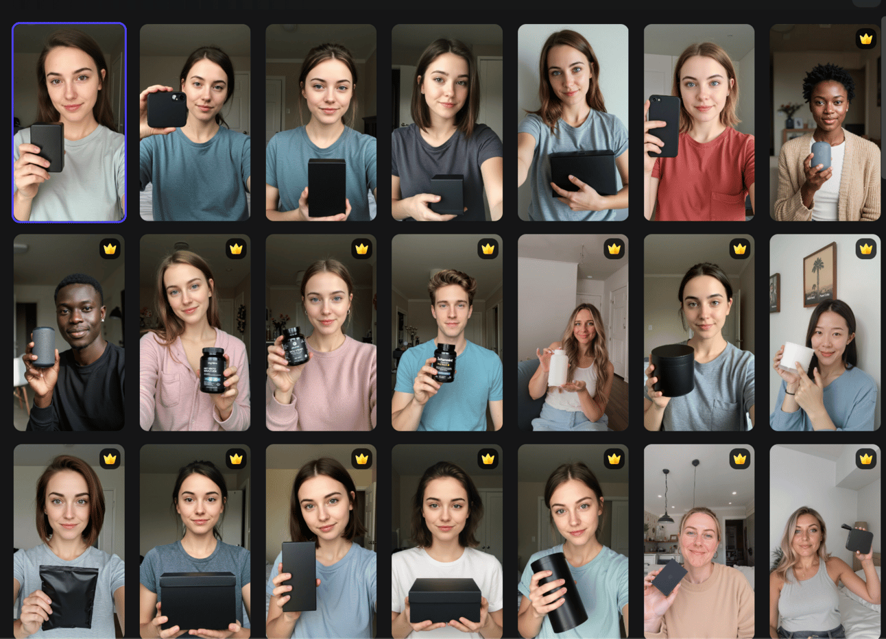 🔹 Match Your Product's Shape & Size – The key to TopView AI’s effectiveness is selecting a pre-existing AI model that best fits your product’s dimensions. Whether your product is handheld (like a phone, supplement bottle, or box) or larger, choosing the right avatar template ensures a natural, realistic look.