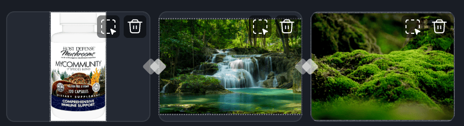 Now let’s take a more down to earth example from E-Commerce. I took a supplements bottle and picked two still photos of a waterfall and a moss covered rock and smashed them together like so:
