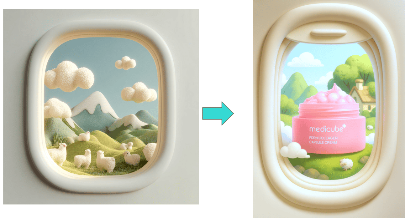 Or take a dreamy airplane window filled with cotton-ball alpacas and turn it into a polished skincare product scene for a social media post?