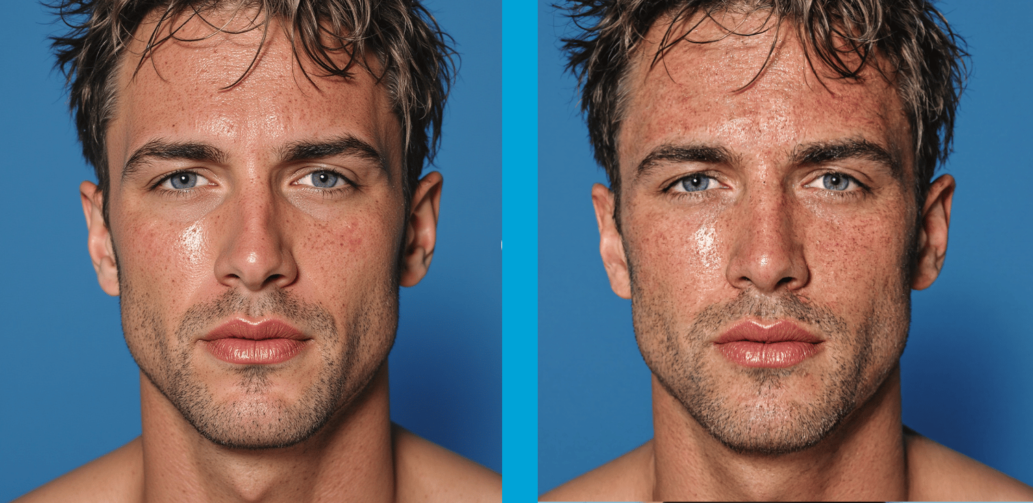 Zoom in and you’ll see pores, peach fuzz, light scattering, even stubble. Everything behaves like it was shot with a real lens under natural lighting.