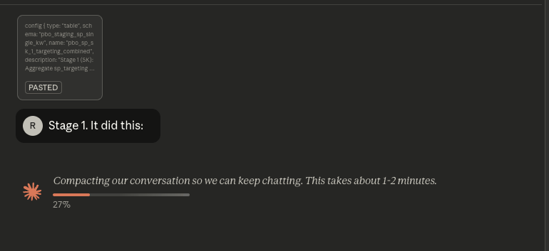 Tell it to flag places where it might be guessing because earlier parts of the chat were compacted away and to ask you to restate facts. You trade a little magic for a lot more reliability.
